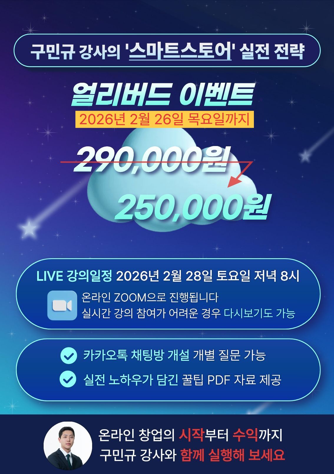 ✔임대료 0원으로 온라인 가게를 만들고, 스마트스토어로 수익을 만드는 실전 전략을 공개합니다.