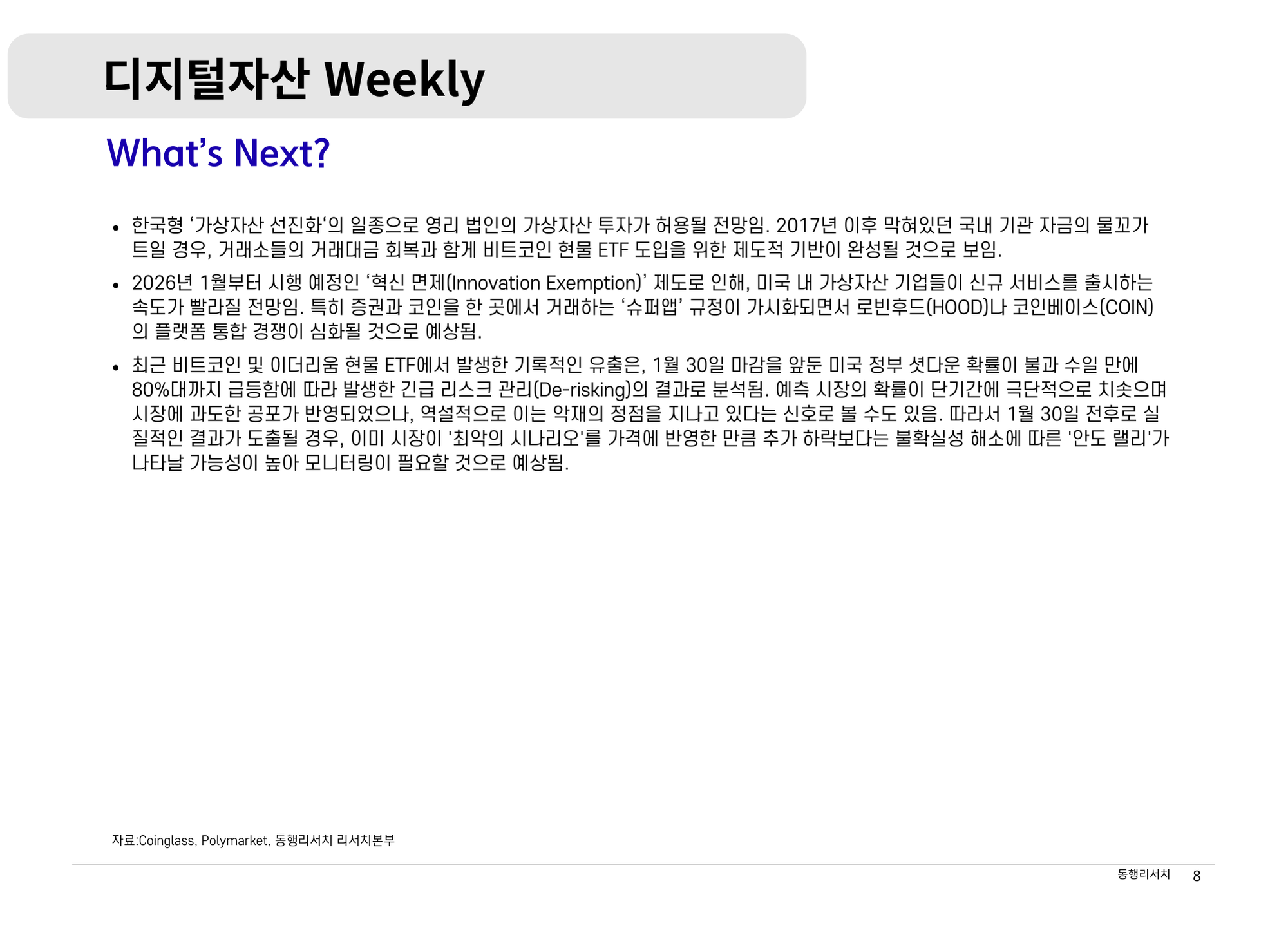 가상자산 [2026.1.26] 디지털자산 Weekly - 제도권 자본의 신뢰도를 시험하는 중요한 변곡점 나눔인사이트매니저 518 8 0 2026.01.26 21:50 260126_디지털자산_위클리.pdf 다운로드