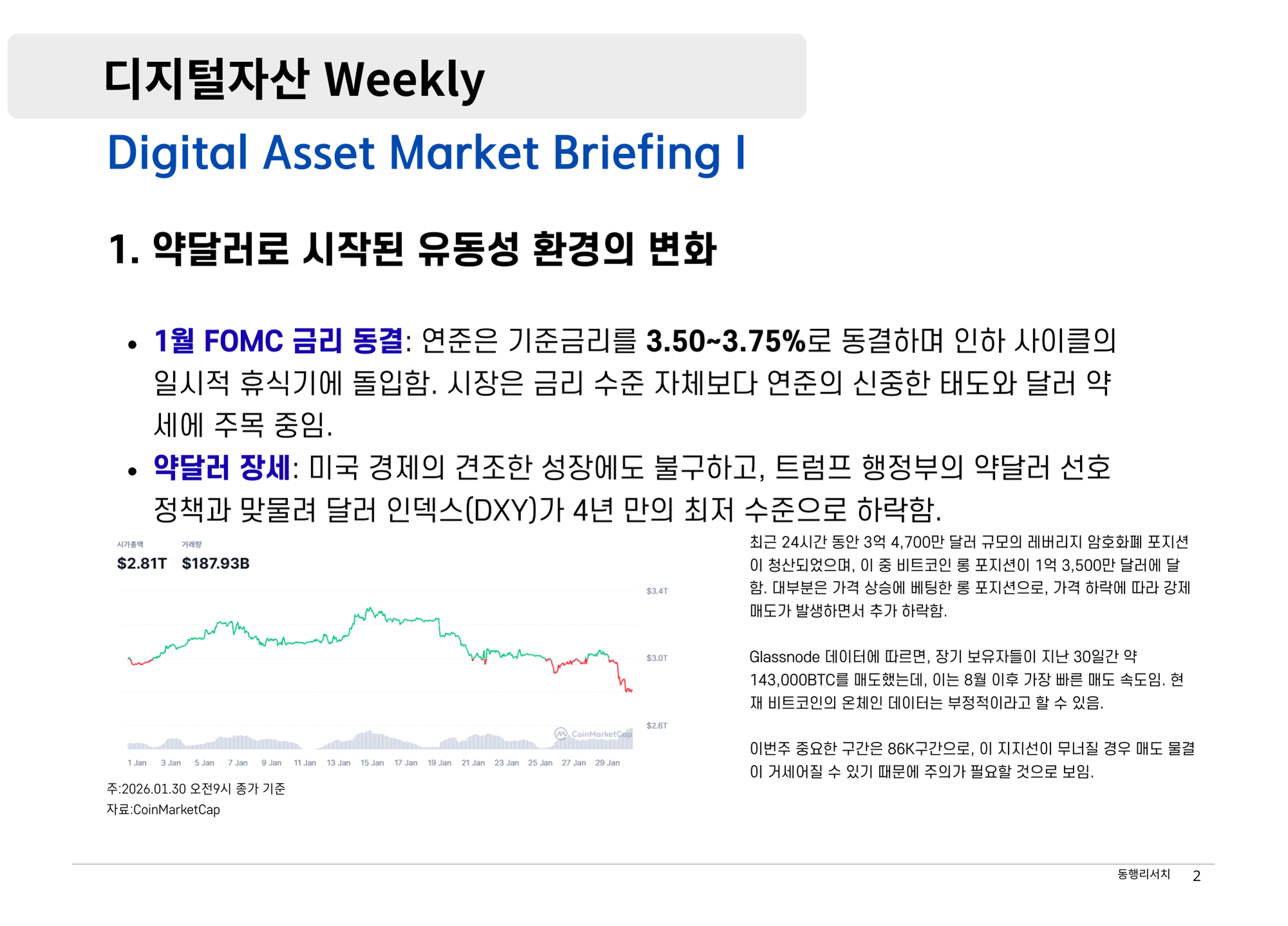 [2026.1.30] 디지털자산 Weekly - 제도권 자본의 신괴도를 시험하는 중요한 변곡점