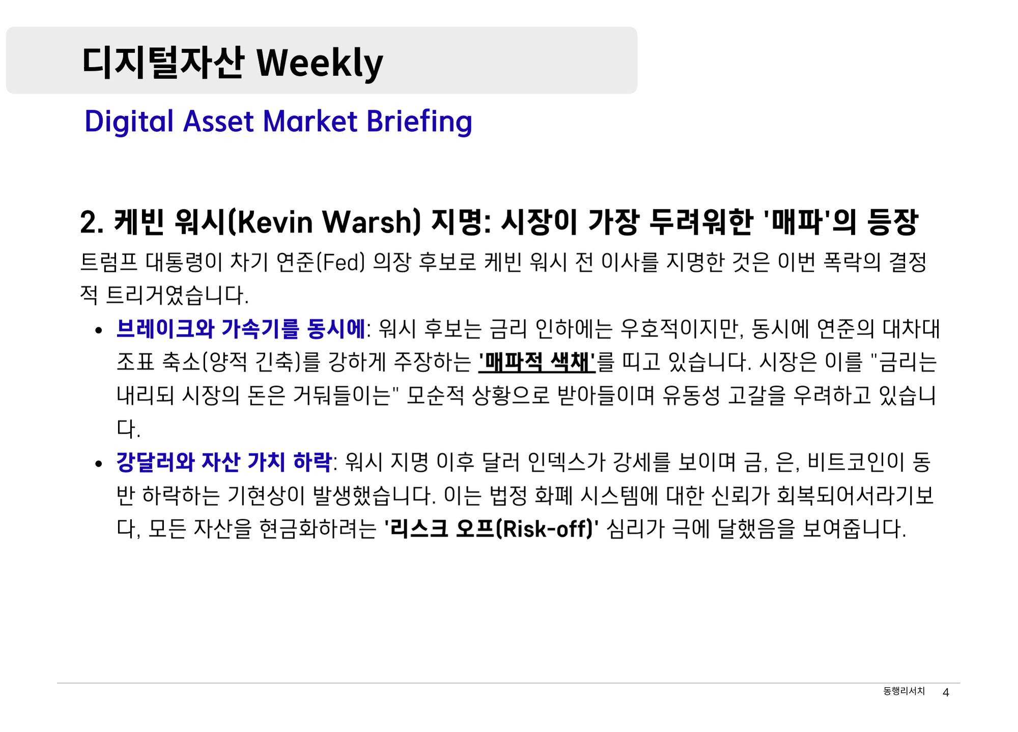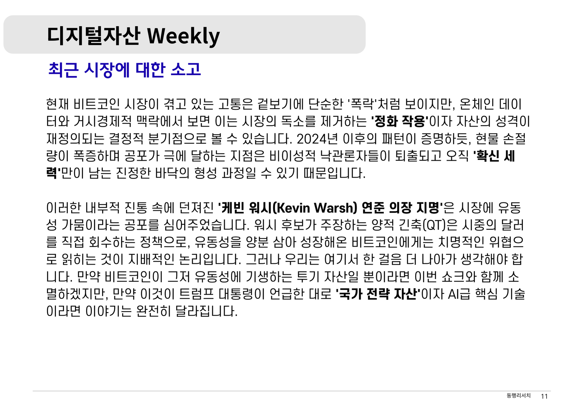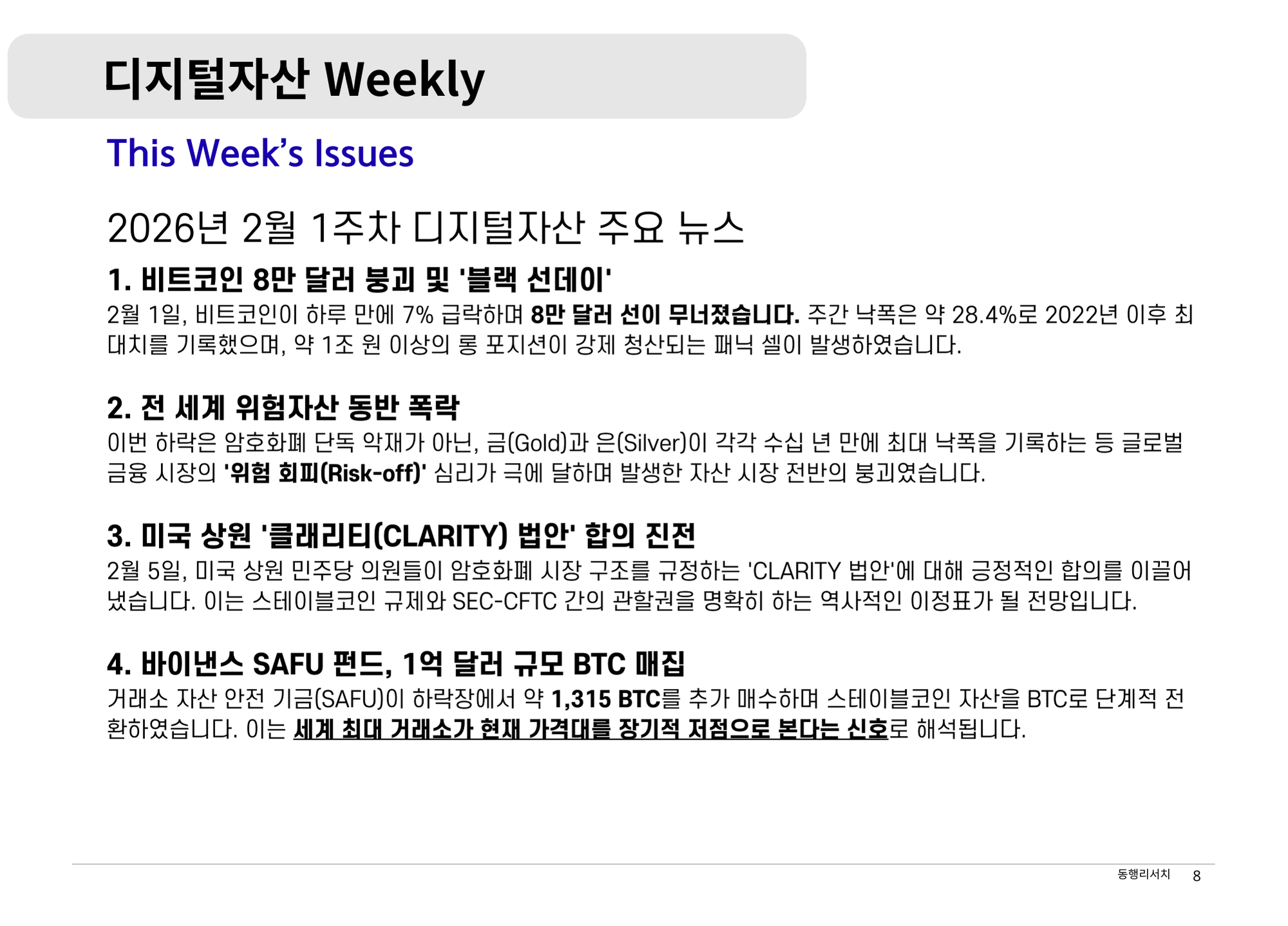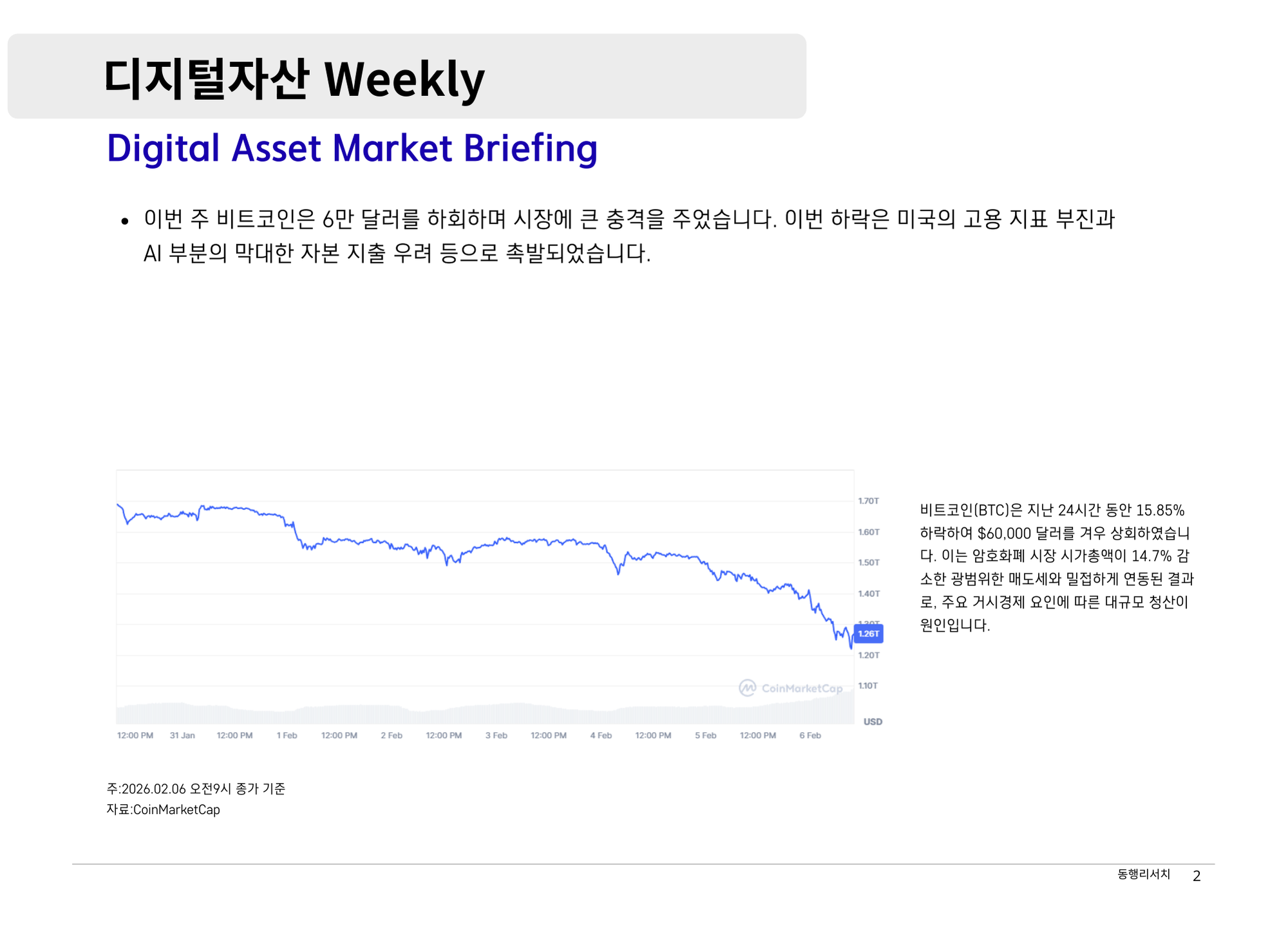 [2026.2.6] 디지털자산 Weekly - 암호화폐 시장의 구조적 전환과 항복