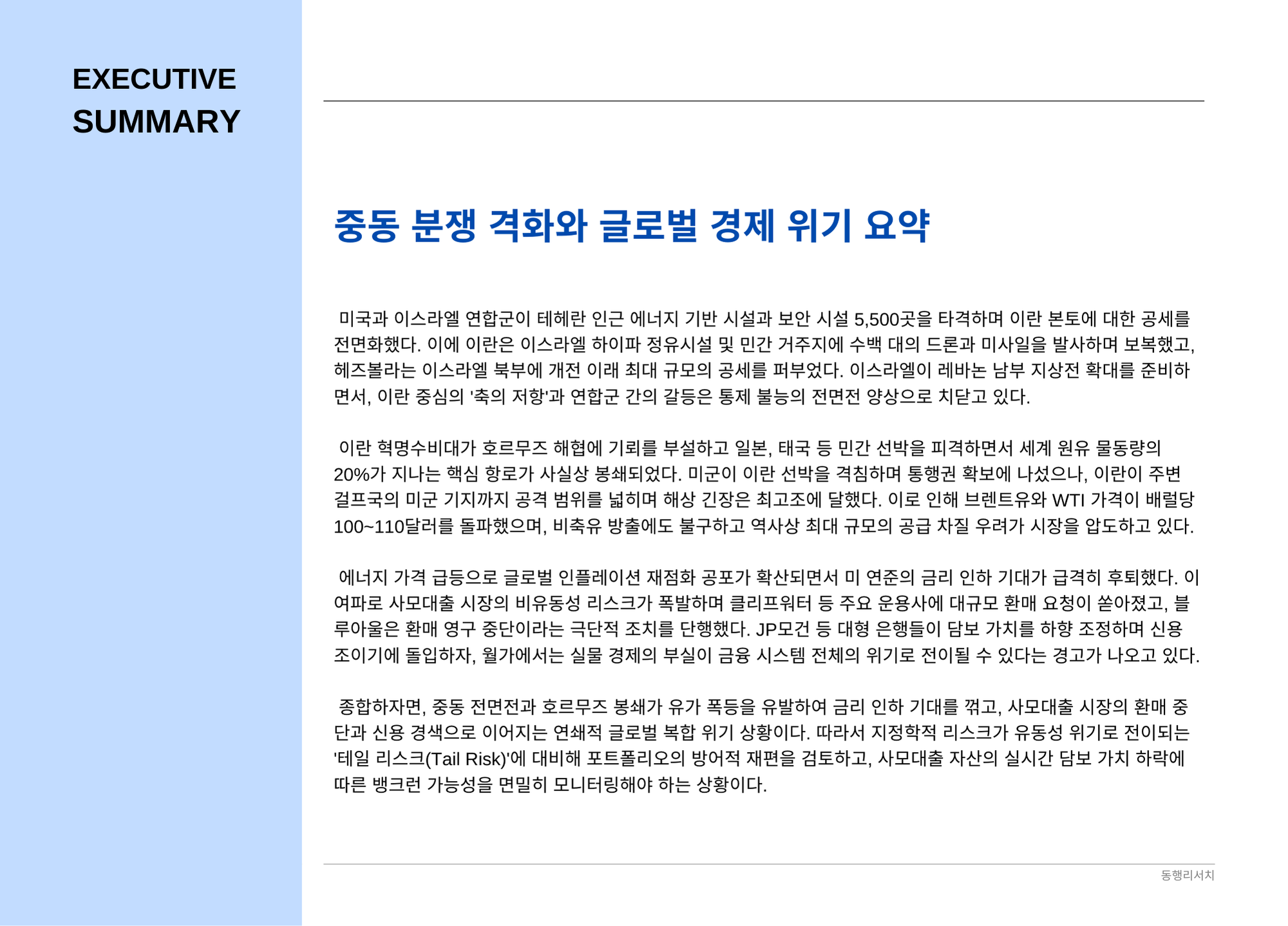 [2026.3.13] 글로벌 자산 포트폴리오 전략 - 중동 분쟁 격화와 글로벌 경제 위기