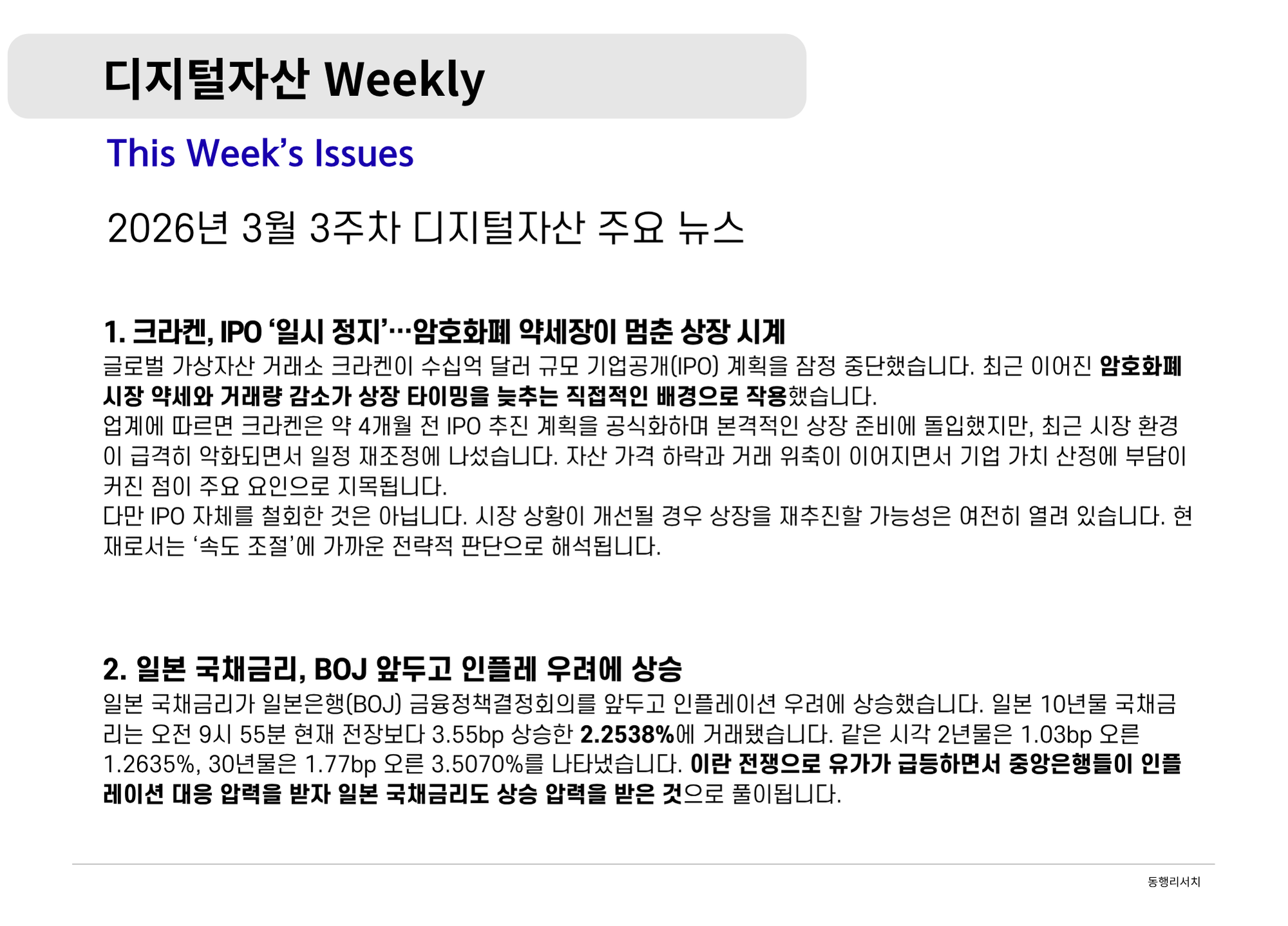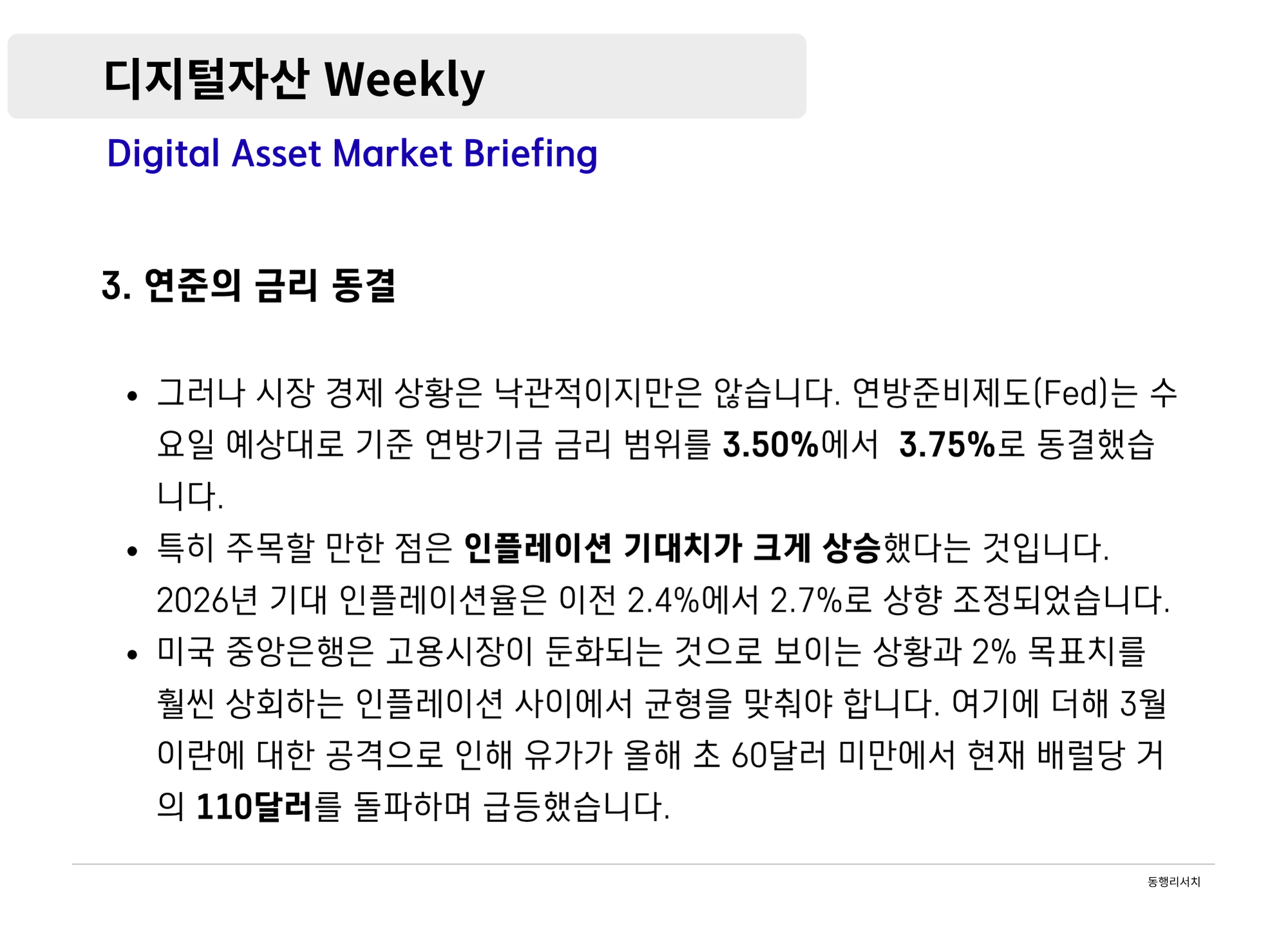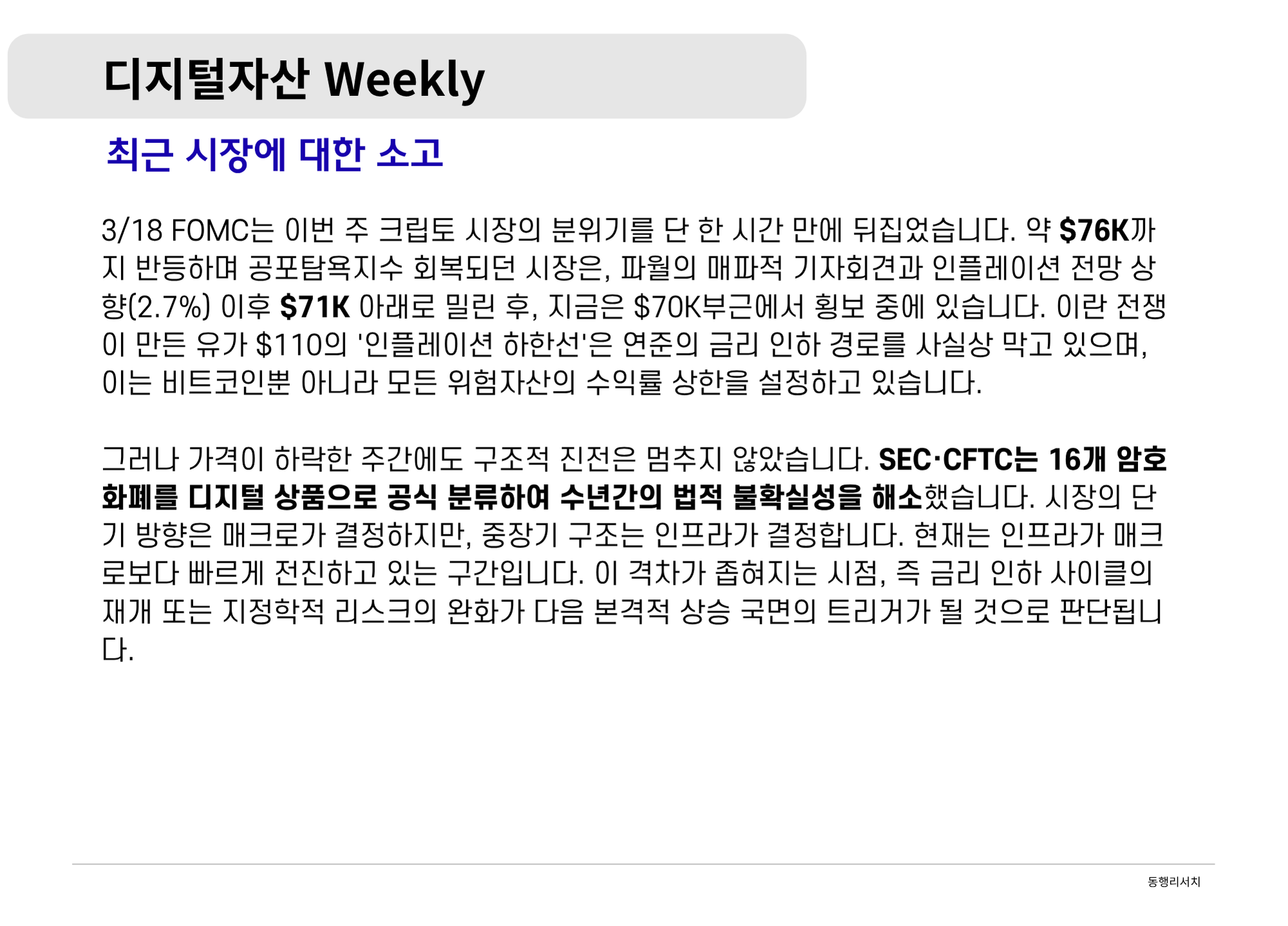 [2026.3.20] 디지털 자산 Weekly - 인플레이션 하한선과 인프라 상한선의 교차점