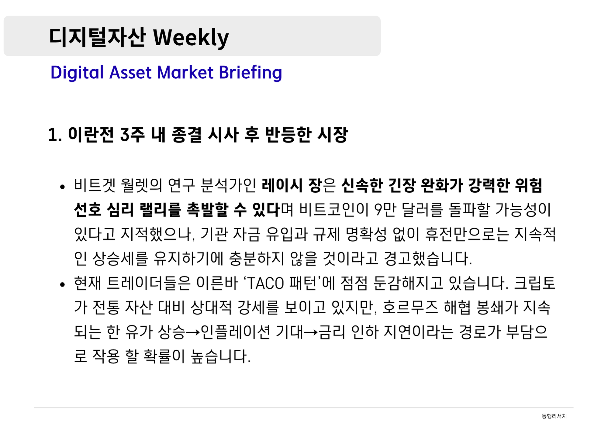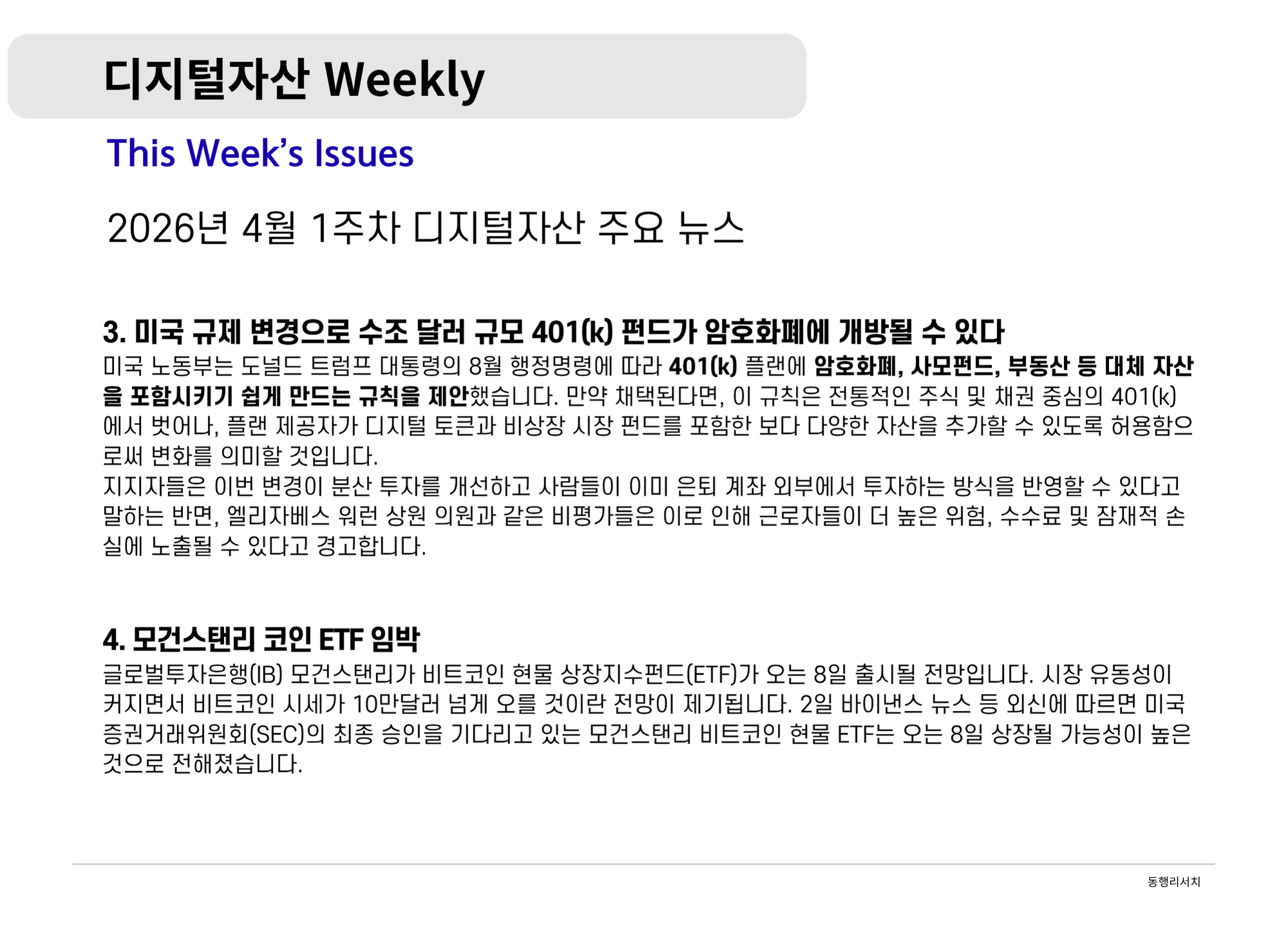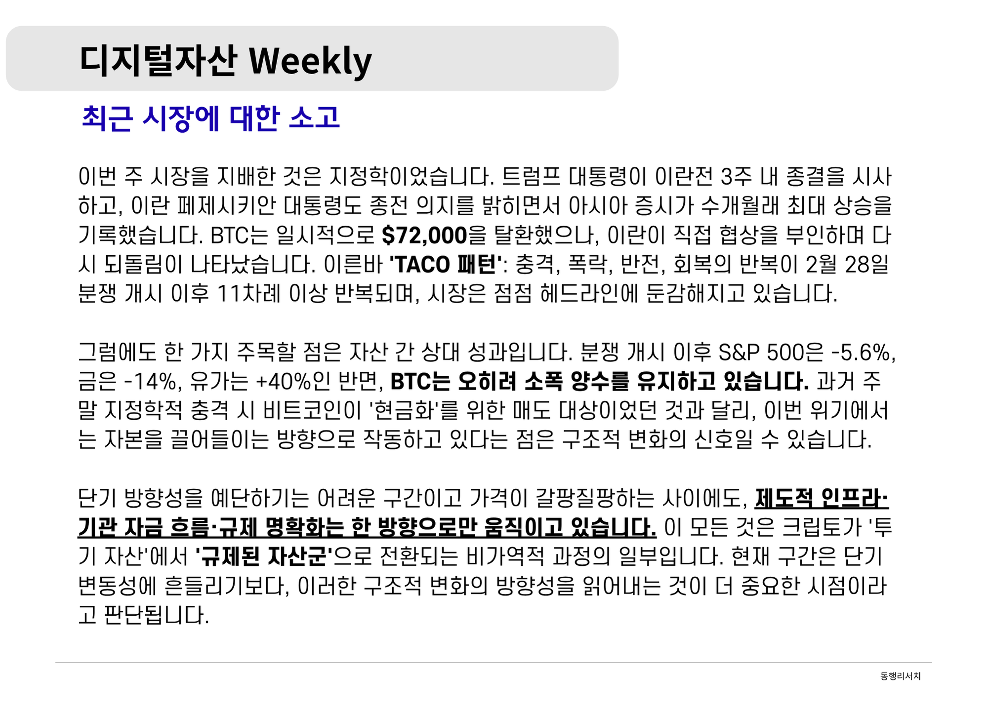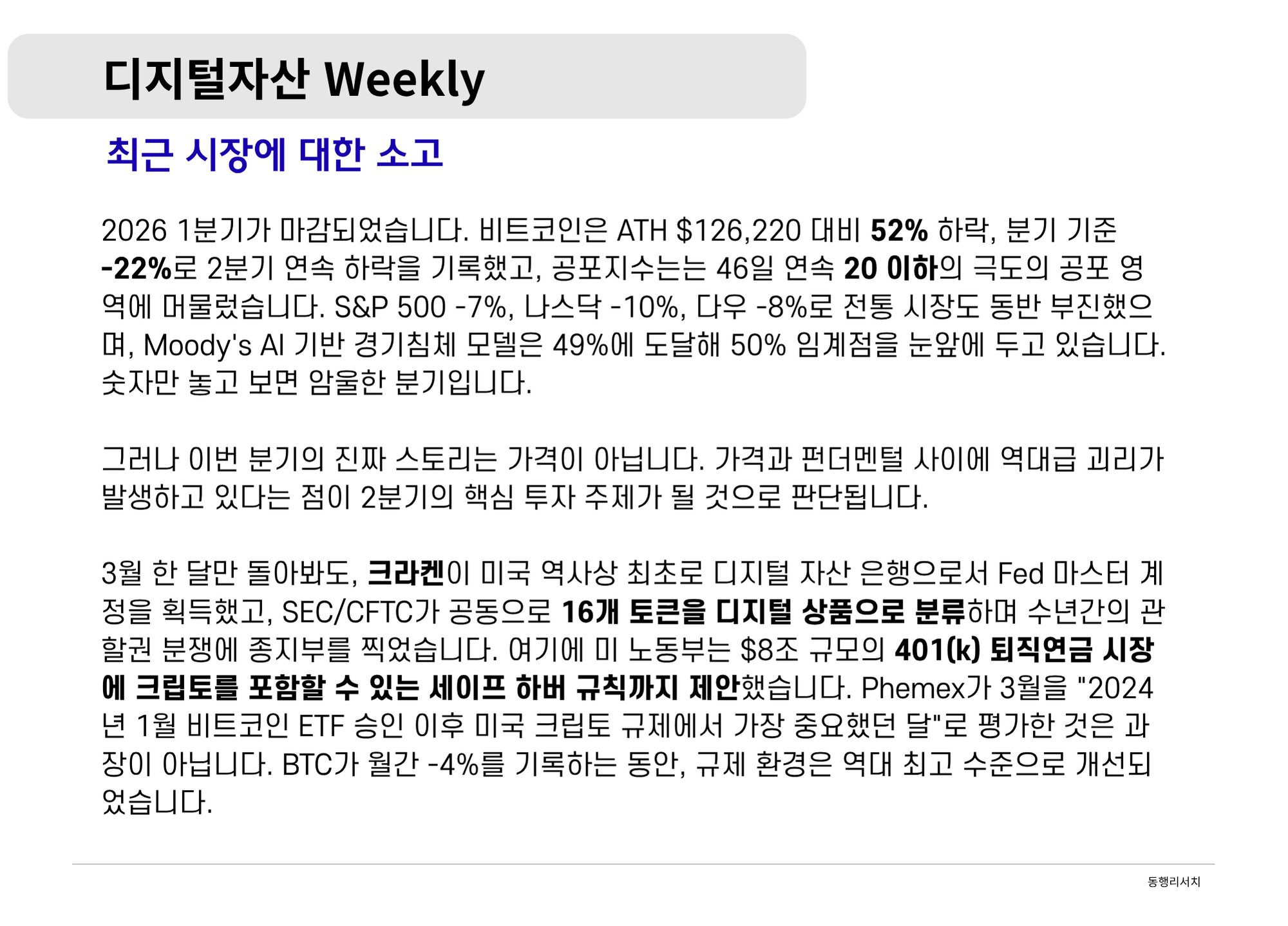 [2026.4.3] 디지털 자산 Weekly - 전환의 교차로: 전쟁·규제·기관이 만드는 방정식
