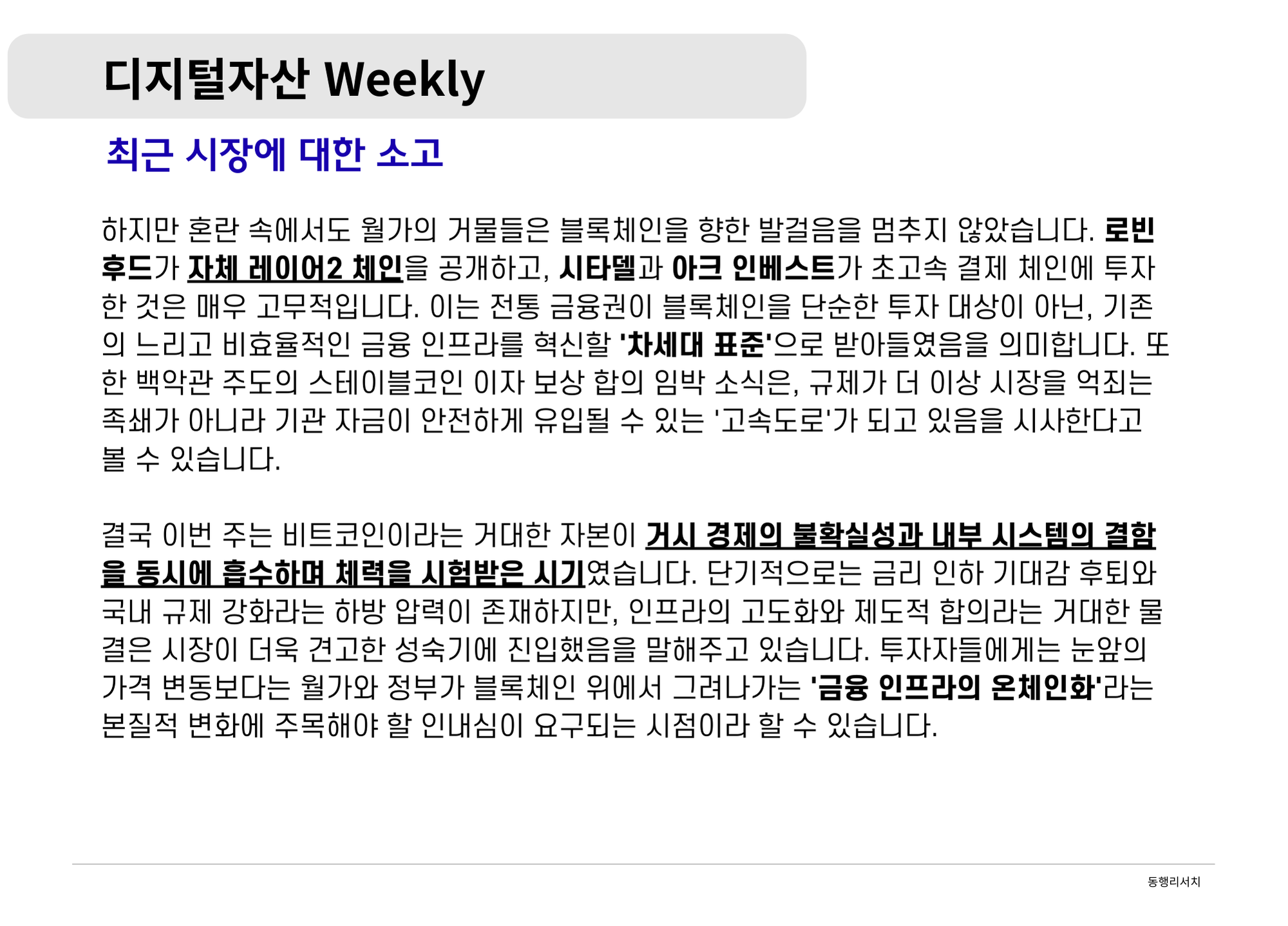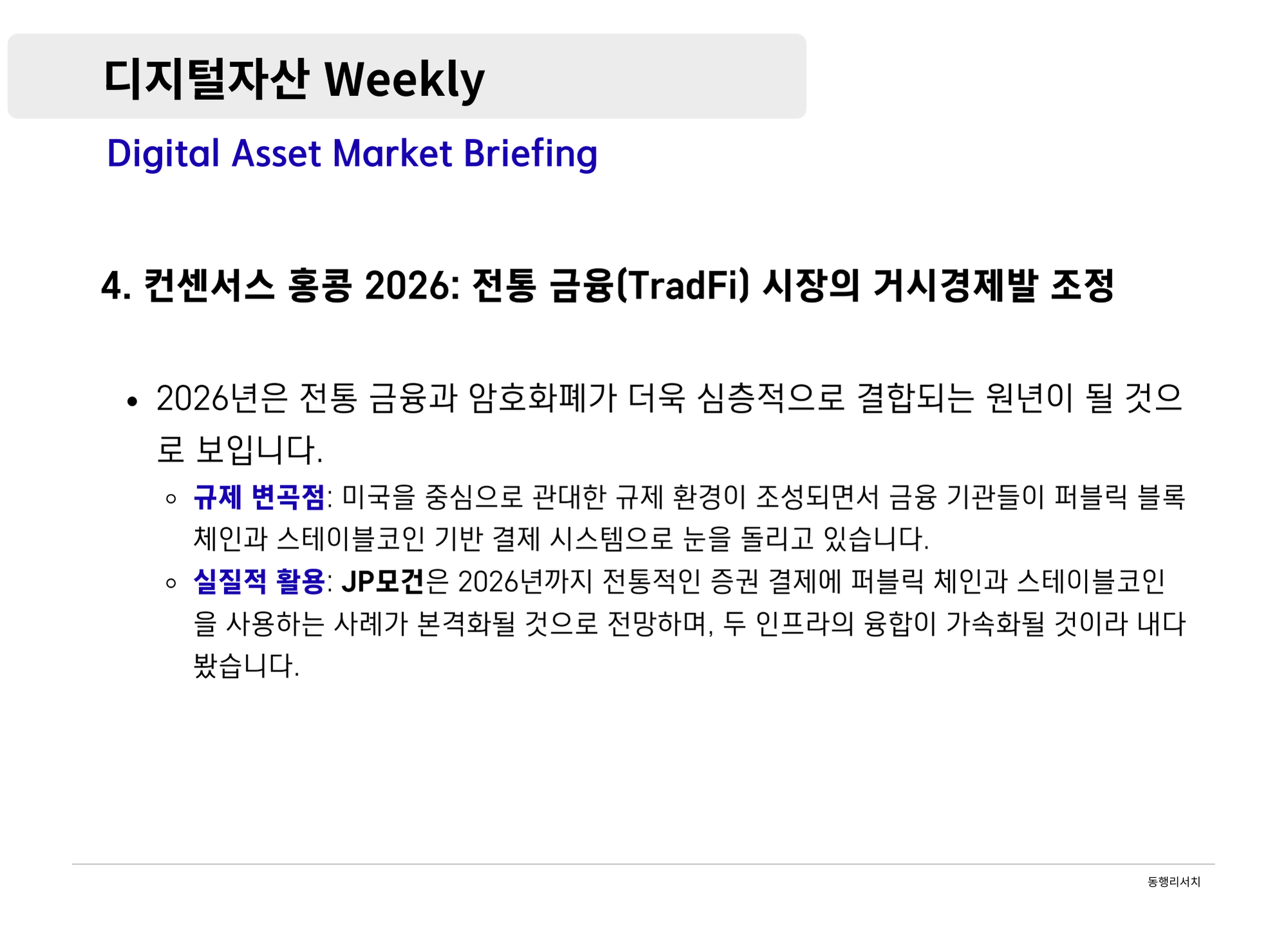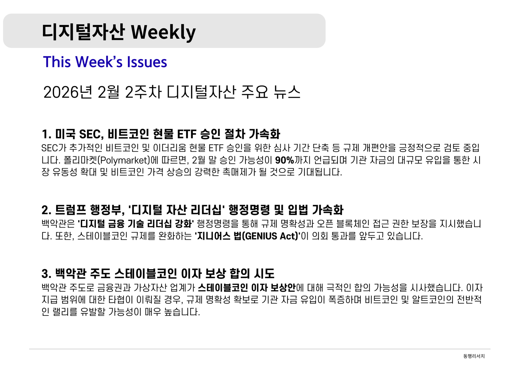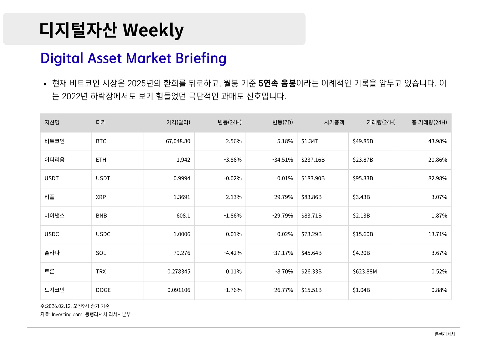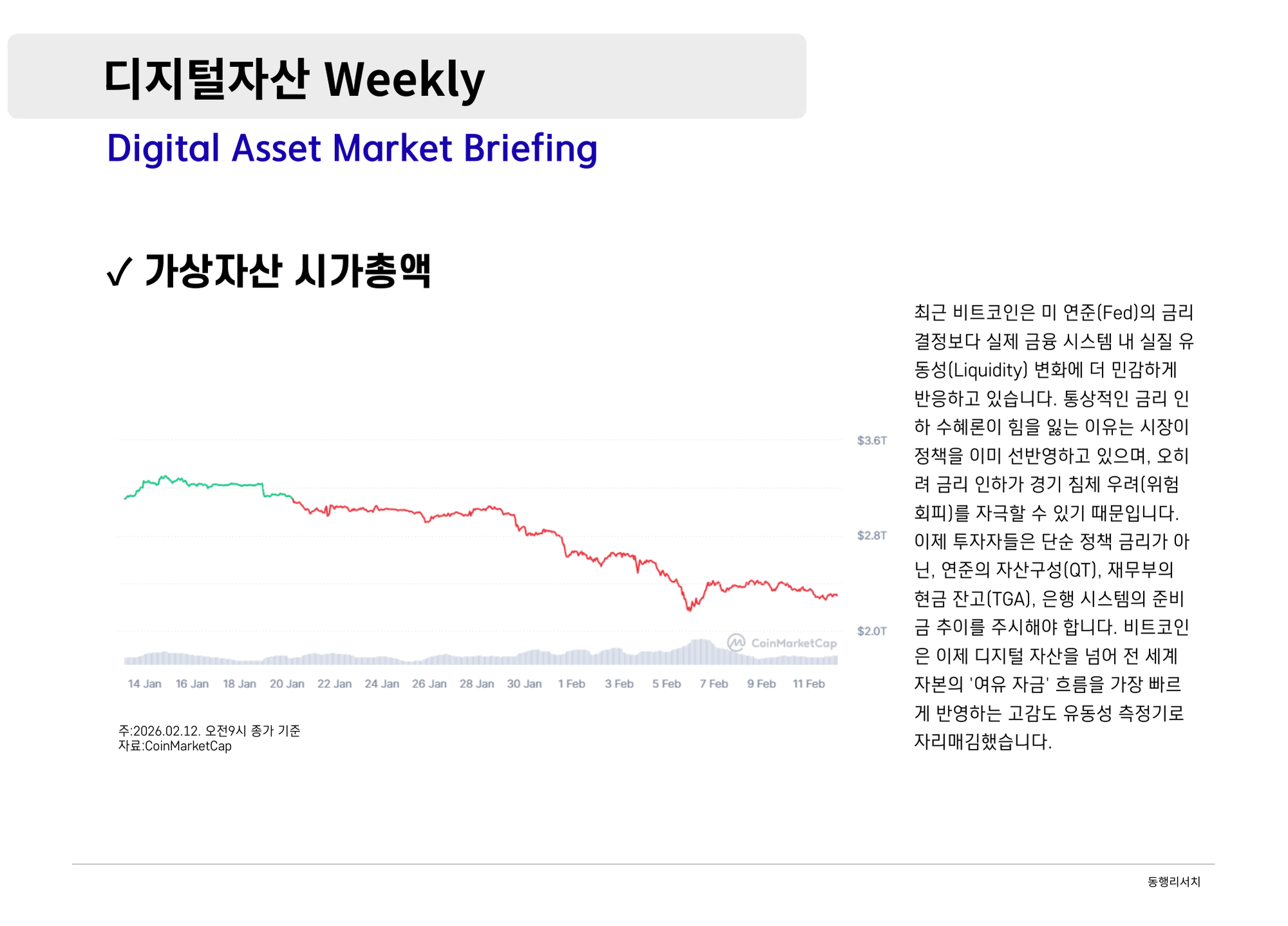 가상자산 [2026.2.13] 디지털자산 Weekly - 금융의 온체인화와 성장의 진통: 월가의 진격과 빗썸 사태가 남긴 과제 나눔인사이트매니저 87 0 0 2026.02.13 14:45