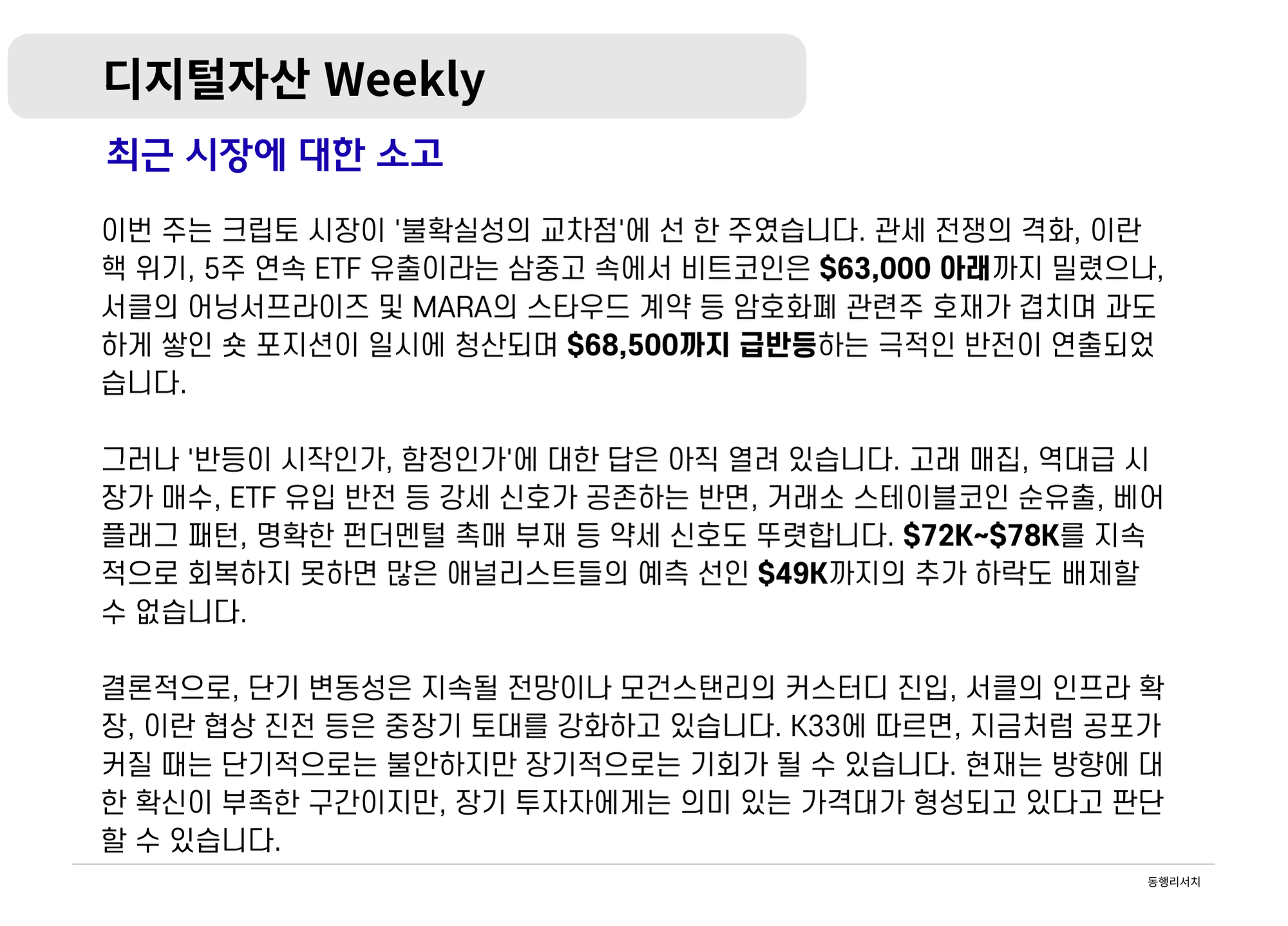 [2026.2.27] 디지털자산 Weekly - 반등은 시작한가, 함정인가: 그러나 유효한 장기 구조