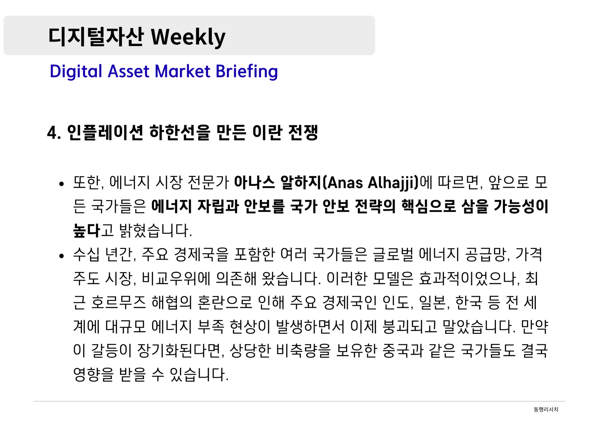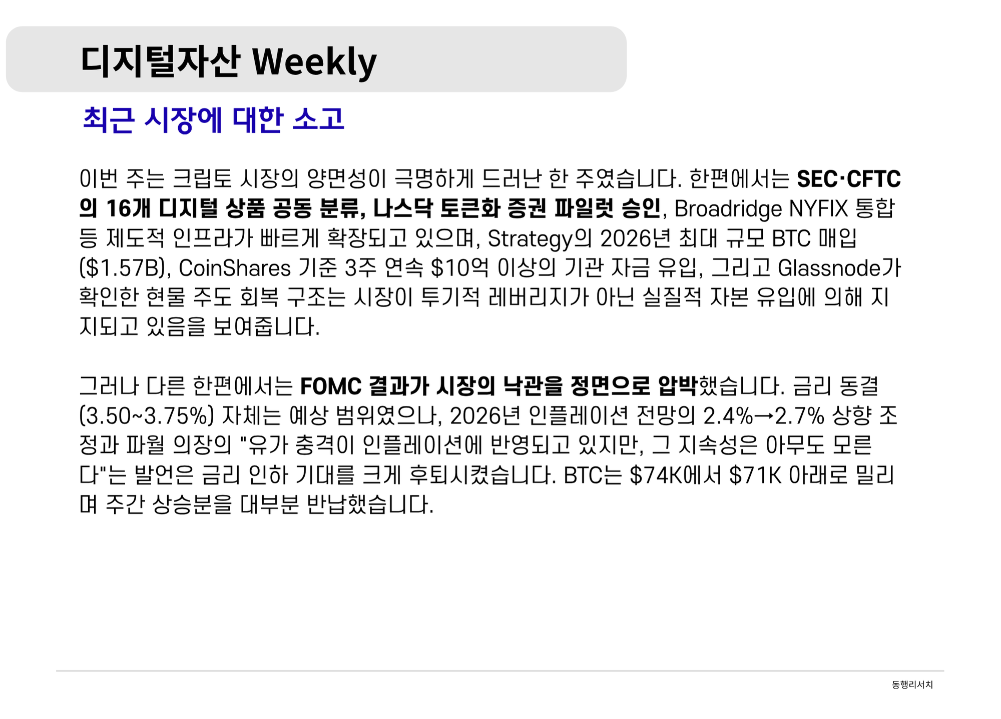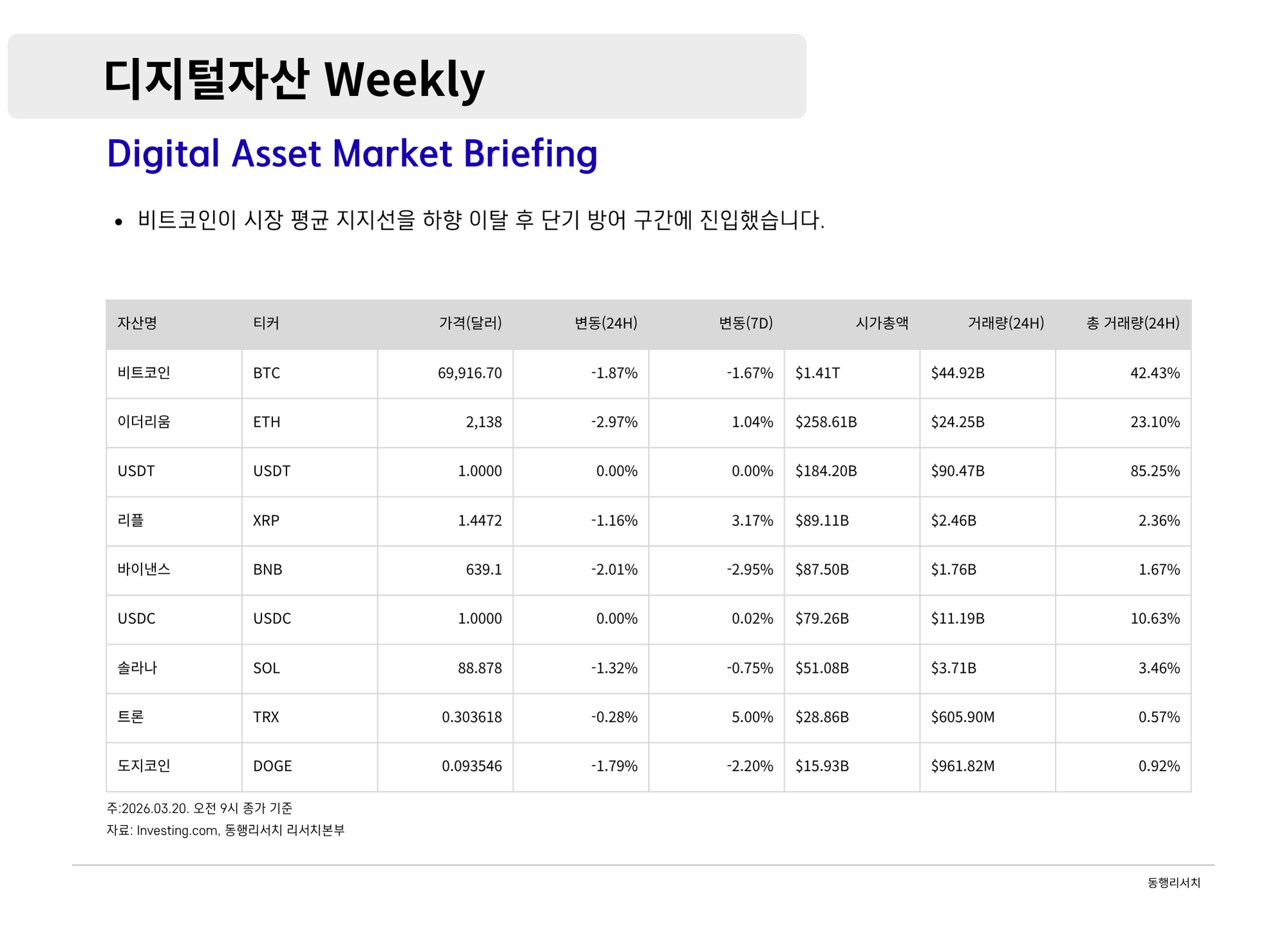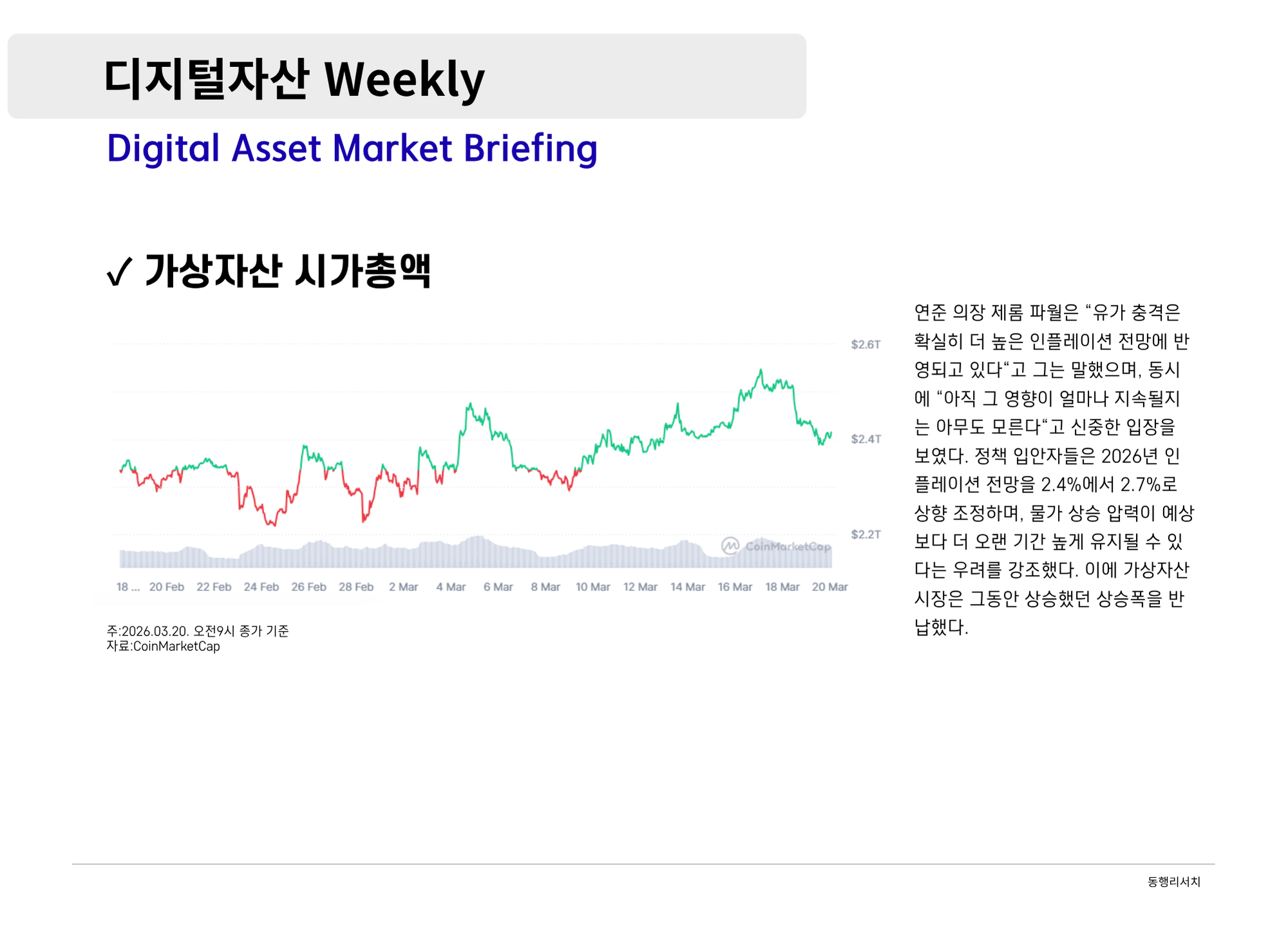[2026.3.20] 디지털 자산 Weekly - 인플레이션 하한선과 인프라 상한선의 교차점