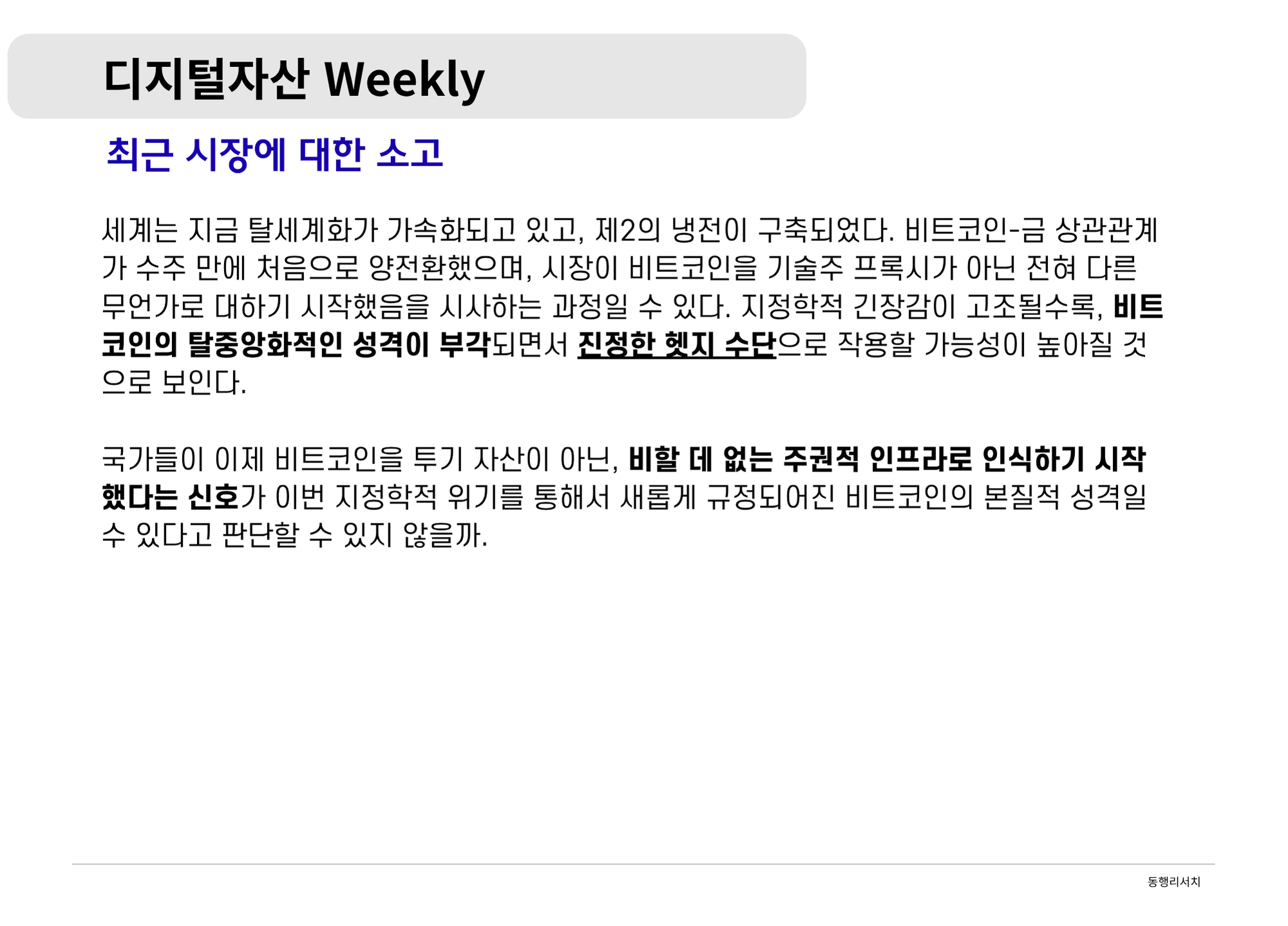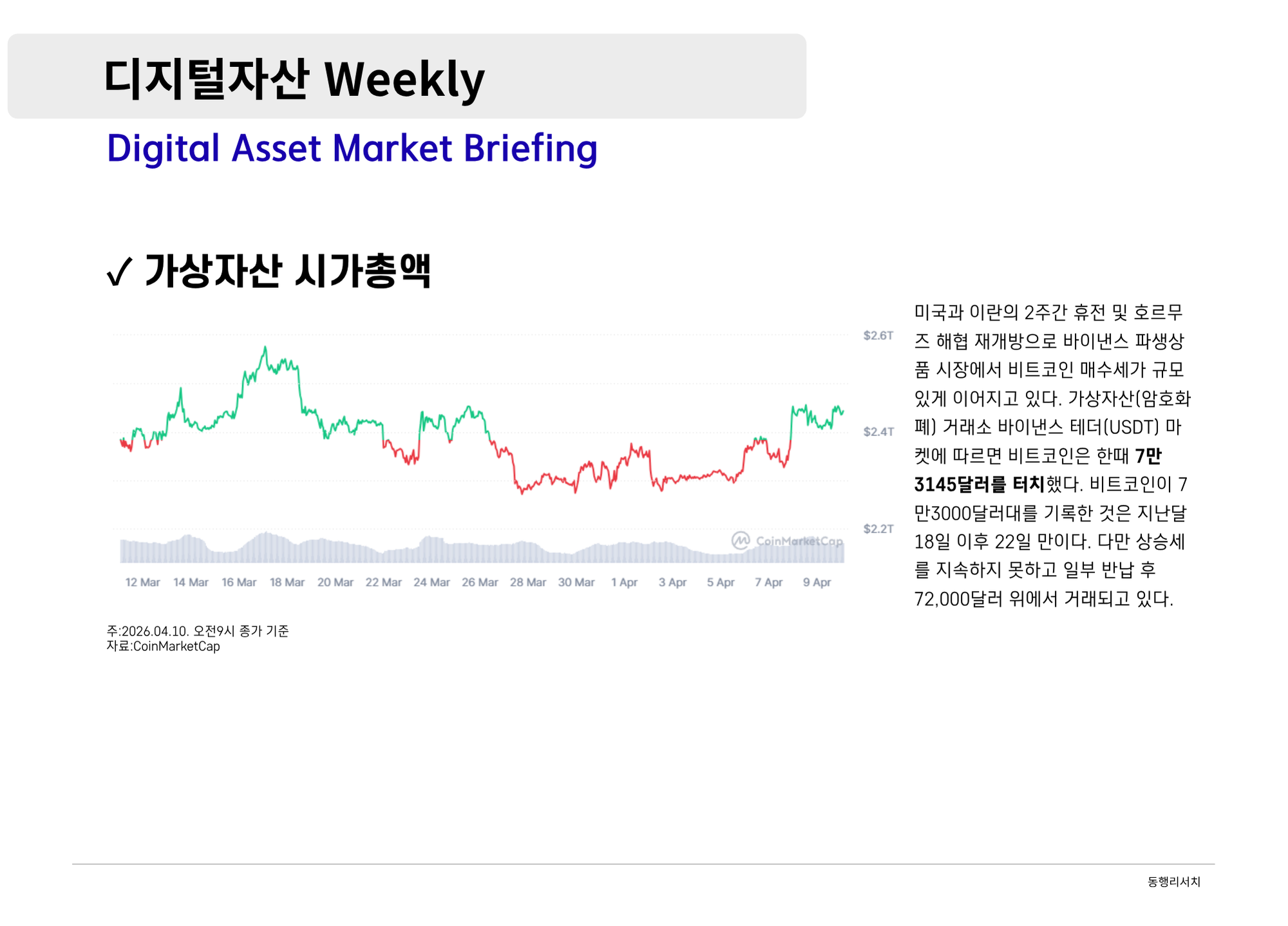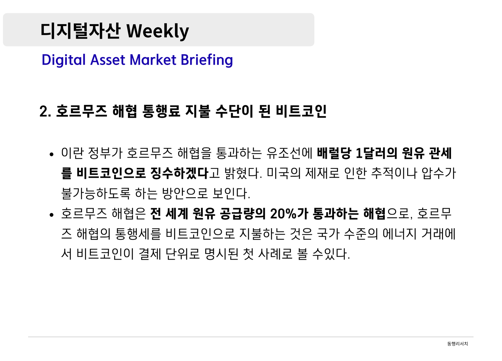 [2026.4.10] 디지털 자산 Weekly - 비트코인, 지정학적 중립 자산으로의 전환